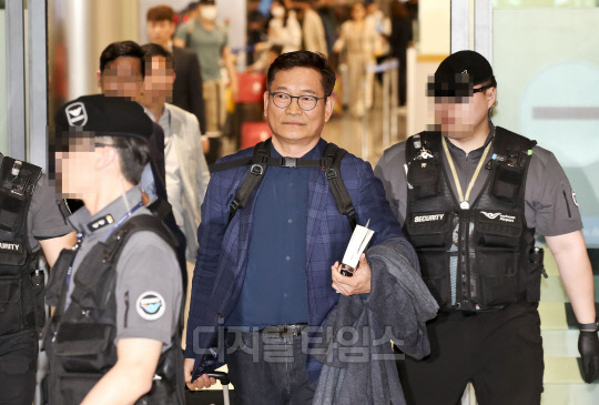 2021년 전당대회 돈 봉투 살포 의혹에 연루된 송영길 더불어민주당 전 대표가 24일 인천공항을 통해 조기 귀국하고 있다.