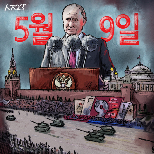 지난 9일 러시아가 78번째 '대조국 전쟁' 승리 기념일을 맞아 모스크바 붉은광장에서 행사를 열었다. '메인 이벤트'는 열병식이었다. 열병식은 러시아 군악대의 2차 세계대전 군가 '성전'(聖戰) 연주와 당시 베를린 함락 선봉 부대인 이드리츠키 소총사단의 '승리의 깃발' 입장으로 시작했다.