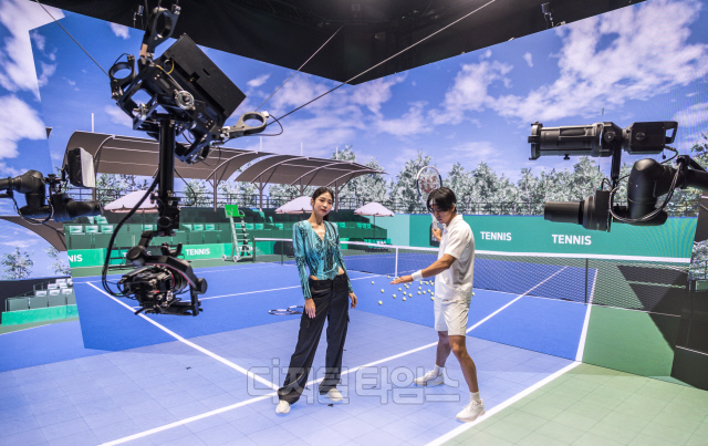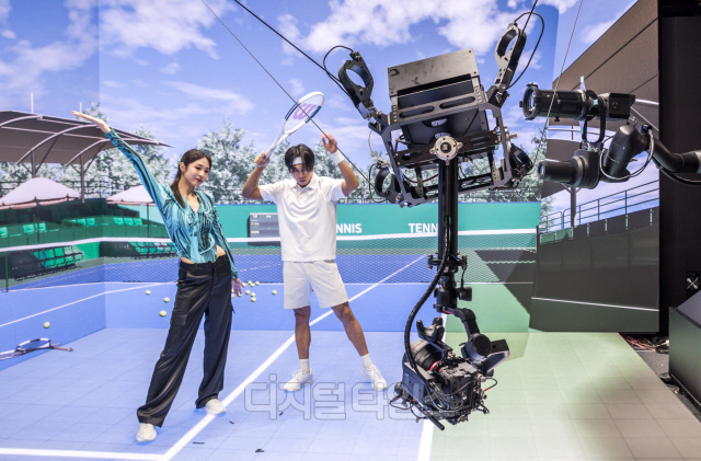 16일 서울 강남구 코엑스에서 열린 제31회 국제 방송·미디어·음향·조명 전시회(KOBA 2023)의 상화 부스에서 모델들이 인공지능(AI) 로봇 촬영 스튜디오인 '딥아이(DEEPEYE)' 스튜디오를 시연하고 있다. 딥아이 스튜디오는 AI와 로보틱스 기술을 통해 영상 촬영 시 상황을 자동으로 인식해 최적화된 환경을 구현하고, 촬영과 편집 등 영상 제작 전 과정을 제어해 무인으로 콘텐츠를 생산하는 솔루션을 제공한다.