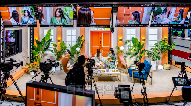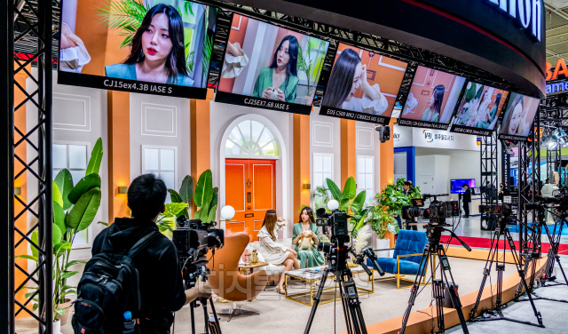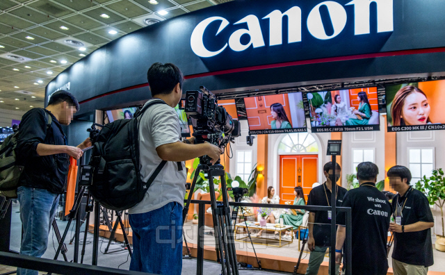 16일 서울 강남구 코엑스에서 열린 제31회 국제 방송·미디어·음향·조명 전시회(KOBA 2023)의 캐논코리아 부스에서 관람객들이 체험을 하고 있다.