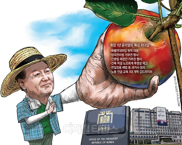 일각 반대·여론 압박에도 "할 일은 한다" 기조 유지 화물연대 파업 원칙 대응 건폭·노조개혁 드라이브 尹 "국민 건강이 최우선" 윤석열 대통령의 '뚝심 리더십'은 법과 원칙에 따라 일부 주변의 반대와 여론의 압력에 휘둘리지 않고 '해야 할 것은 하고, 하지 말아야 할 것은 하지 않는다'는 것이다.
