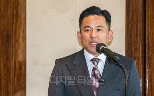 김재원 휴롬 대표가 19일 서울 중구 웨스틴조선호텔에서 열린 한국영양학회와 휴롬이 함께하는 '생애전주기 채소·과일 섭취 국민건강 프로젝트' 기자간담회에서 인사말 하고 있다.