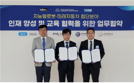 이번 체결식에는 국민대학교 신성환 교무처장 겸 사업단장, 한양대학교(ERICA) 박태준 사업단장, 조영훈 한국로봇산업협회 상근부회장이 참석했다.