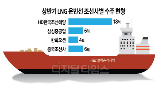 상반기 34척 중 28척 수주 HD한국조선해양 18척 '최다' 하반기 발주량 67% ↑ 기대