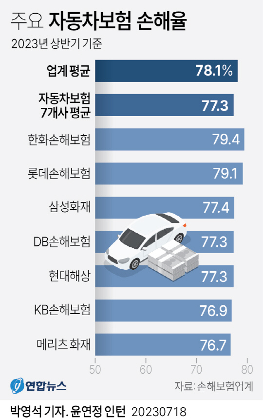 흥국화재, MG손해보험, AXA손해보험, 하나손해보험 등 소형사들의 올해 상반기 자동차보험 손해율은 평균 89.8%에 달한다.