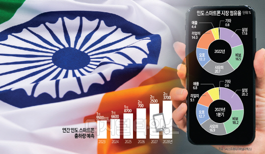 미국 시장조사업체 SA(스트래티지애널리틱스)에 따르면, 올해 인도 스마트폰 출하량은 1억5900만대로 예상된다. 지난해 출하량은 1억4400만대로, 글로벌 스마트폰 시장이 위축된 가운데 나홀로 두자릿수 성장을 기록했다. 세계 스마트폰 시장이 포화된 가운데 인도 시장은 꾸준하게 성장해 2028년 2억3700만대 규모로 커질 전망이다.
