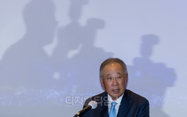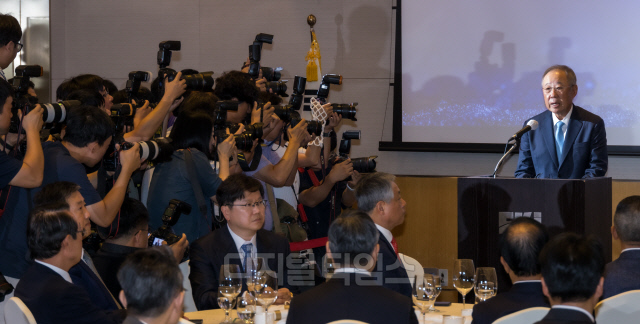 전국경제인연합회 신임 회장으로 선임된 류진 풍산그룹 회장이 22일 서울 여의도 전경련 회관에서 열린 임시총회에서 취임사를 하고 있다.