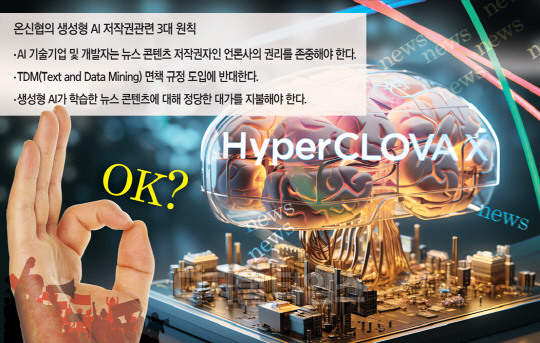 최근 네이버가 초거대 인공지능 '하이퍼클로바X'를 공개하면서, 국내에서도 생성형 AI의 뉴스 저작권 침해 문제가 본격 거론되는 가운데 국내 주요 언론사의 디지털 뉴스 콘텐츠 부문을 대표하는 온신협이 첫 공식 입장을 밝힌 것이다.