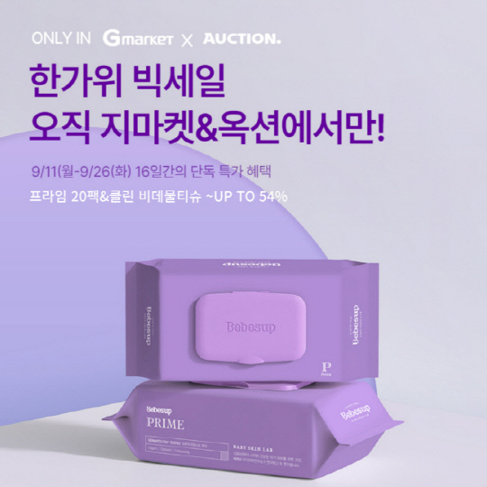한가위 빅세일 행사는 G마켓과 옥션에서 공동으로 진행하는 대규모 할인 행사로 16일동안 진행된다. 베베숲은 이번 행사에 최근 런칭하여 출시 한 달 만에 2만개를 돌파하여 큰 호응을 얻고 있는 G마켓과 옥션 단독 상품인 '프라임 물티슈'에 이어 클린비데까지 베베숲 인기 제품들을 합리적인 가격에 만나볼 수 있어 벌써부터 많은 기대를 모으고 있다.