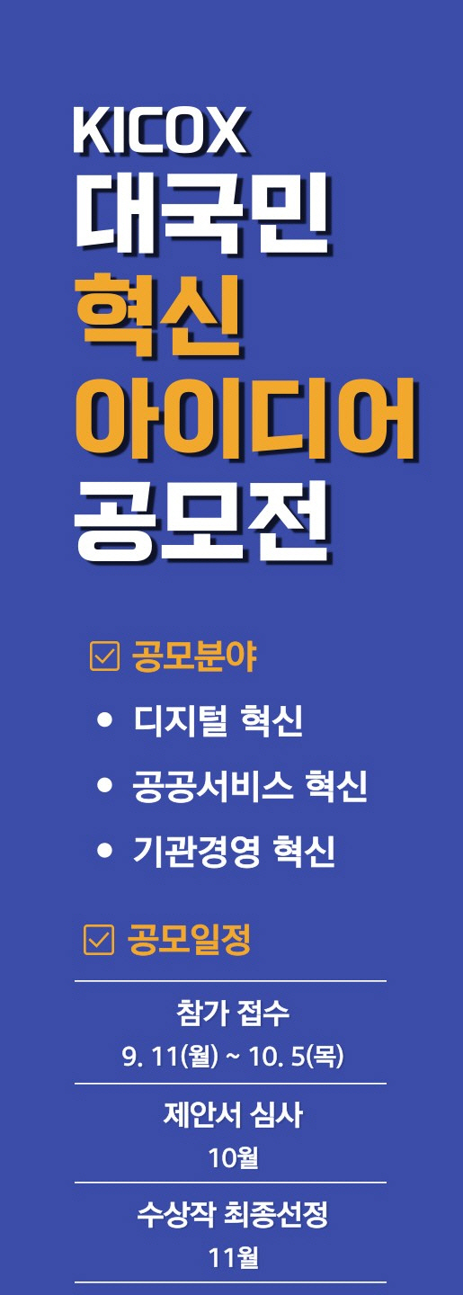 한국산업단지공단은 10일 'KICOX 대국민 혁신 아이디어 공모전'을 10월 5일까지 개최한다고 밝혔다.