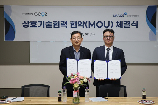 ㈜지오투정보기술과 공간정보산업진흥원은 양 기관의 우호와 기술교류를 강화하고 글로벌 공간정보 시장 개척을 위하여 상호 전문분야에 대한 협력을 약속했다.