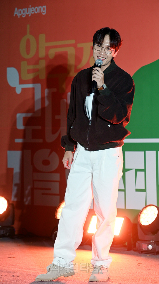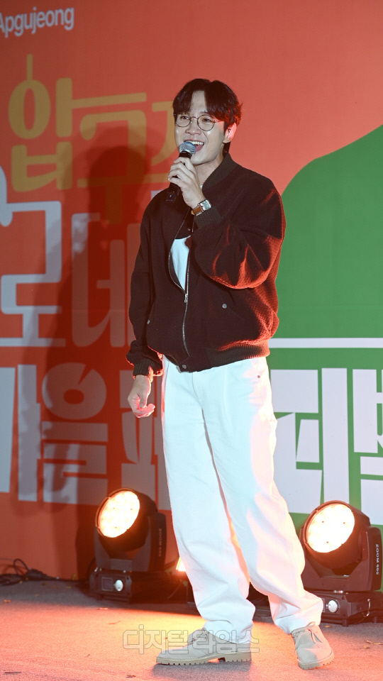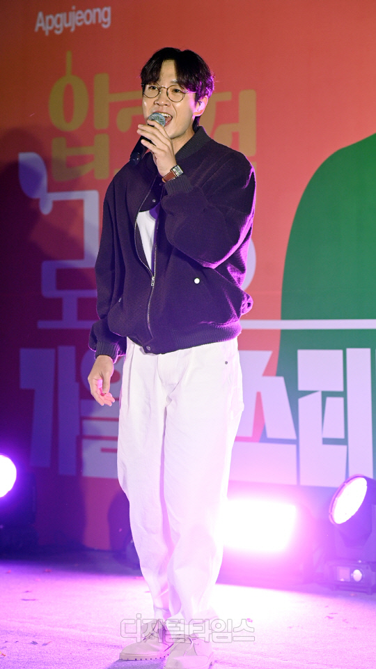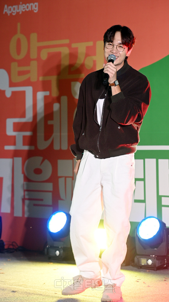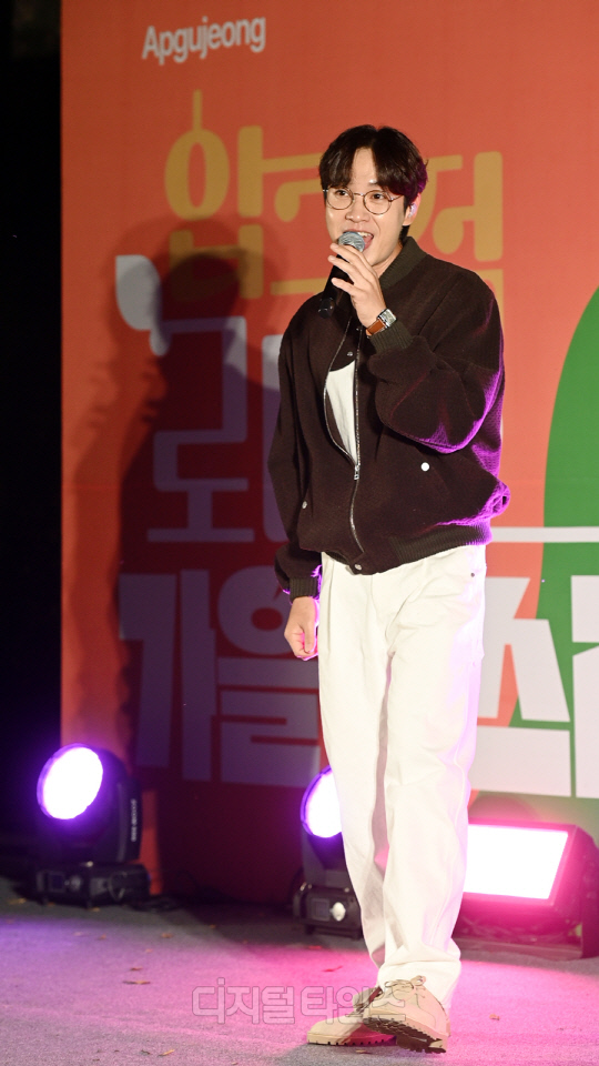 가수 이석훈이 서울시 강남구 도산공원에서 강남구의 주최로 진행된 '2023 압구정 로데오 가을 페스티벌'에서 열창을 하고 있다.