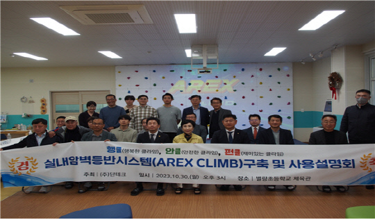 별량초등학교(교장 최성환, 아래 별량초)가 지난달 30일 본교 체육관 '별꿈터'에서 학생, 교직원과 교육 관련 관계자 등 100여 명이 참석한 가운데 '실내 암벽등반(클라이밍) 시스템 (AREX CLIMB)'을 구축했다고 21일 밝혔다.