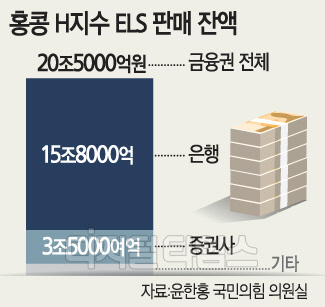 금융권 전체 업체의 홍콩 H지수 ELS 판매 잔액은 20조5000억원이다. 이중 은행은 15조8000억원, 증권사는 3조5000여억원을 팔았다.