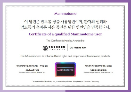 맘모톰 코리아는 맘모톰 장비를 사용해 조직검사, 제거를 받은 환자들에게 정품인증카드를 배부하고, 맘모톰 정품 장비를 주로 사용하는 요양기관 또는 의료진에 맘모톰 정품 인증서를 제공하는 등 가치 인식 변화를 지속적으로 유도하고 있다고 29일 밝혔다.