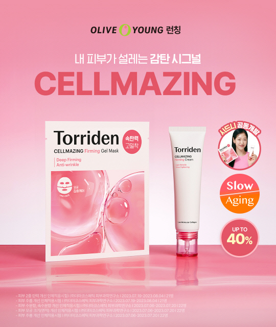 토리든은 올리브영 입점을 기념하기 위해 2024년 1월 1일부터 올리브영 매장 및 온라인몰에서 런칭 프로모션을 진행할 예정이다. 점점 신경 쓰이는 모공부터 주름, 보습까지 완벽 케어할 수 있는 '셀메이징 저분자 콜라겐 탄력 크림' 은 프로모션 기간 동안 본품 용량 60ml에 2ml 5개를 추가 증정하는 올리브영 특별 증량 기획 세트를 새롭게 선보여 출시 기념 35% 할인된 가격으로 판매한다.