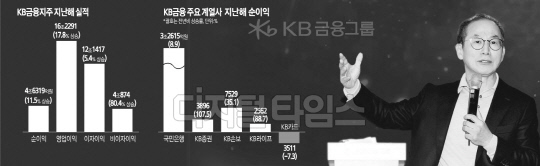 비은행 계열사의 실적 성장도 돋보였다. KB증권은 지난해 3896억원의 순이익을 냈다. 전년 대비 107.5% 급증했다. 이는 WM금융상품 판매 증가로 인한 WM수익 증가, 대형 투자은행(IB) 딜을 통한 수익성 제고에 기인한다.