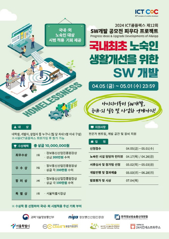 올해는 국내 최초로 '노숙인의 생활 개선을 위한 SW 개발'을 위해 우수 아이디어를 선정하고 SW 개발과 국내?외 노숙인 대상 실증을 지원하며 우수 개발물에 대해서는 사업화 연계까지 지원할 계획이다.