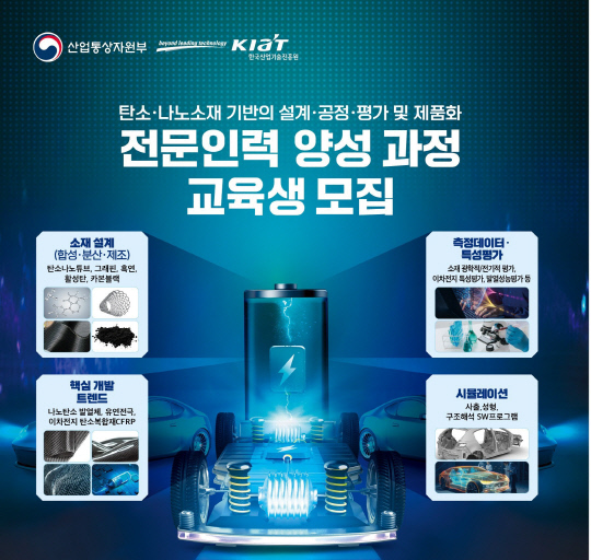 협회는 최근 한국전기연구원, 한국과학기술연구원과 함께 '나노카본소재 설계 및 응용분야 교육과정 전문인력'과 '미래 자동차용 탄소소재 설계·제조 및 모듈/부품 적용과정 전문인력' 등 2개 양성과정을 개설하고 교육생 모집을 진행하고 있다.