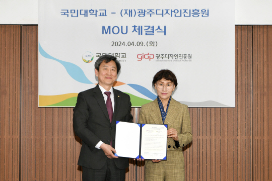 이날 업무협약 체결식에는 광주디자인진흥원 송진희 원장, 윤보연 국장, 문지수 과장, 국민대학교 정승렬 총장, 이인형 산학협력단장, 최경란 동양문화디자인연구소장, 장중식 조형대학장 등이 참석해 향후 본격적인 협력 추진을 위한 단계별 전략과 구체적 상호 협력 방안에 대해 논의했다.