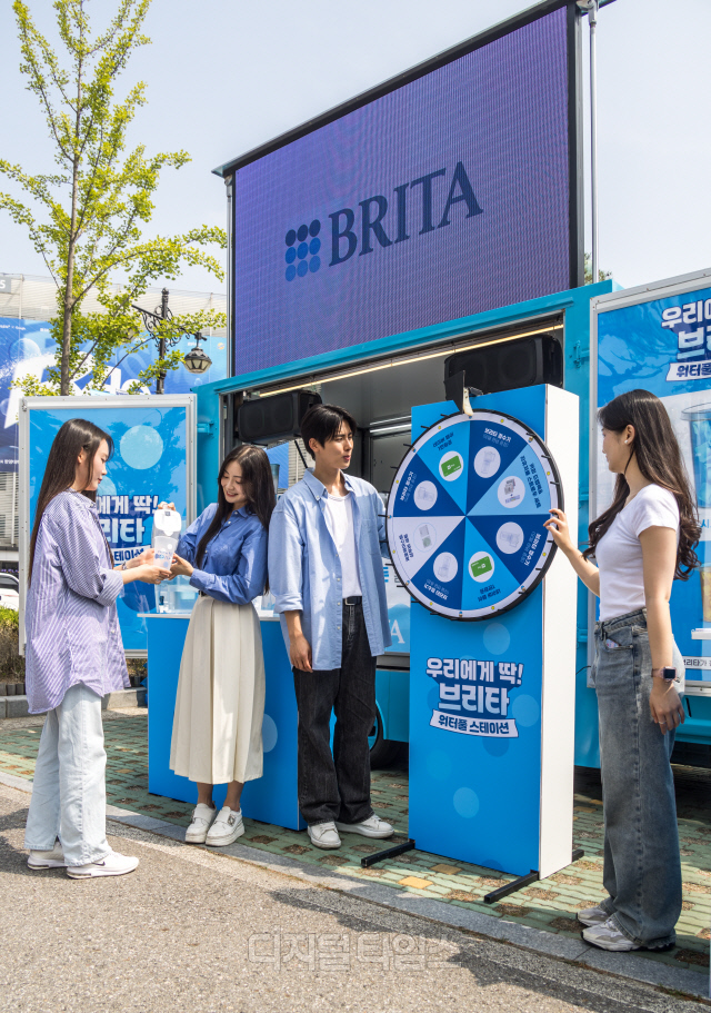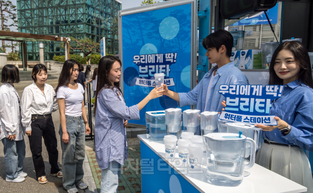 22일 서울 성동구 한양대학교 국제관 앞에서 독일 정수기 브랜드 브리타의 캠퍼스 팝업 '워터풀 스테이션' 행사가 진행되고 있다. 일일 팝업존 형태로 운영되는 이번 행사는 대학생들에게 브리타 정수기로 내린 물로 제작한 시원한 음료수를 선보이며 포토존·에어볼 게임 등 다양한 프로그램을 즐길 수 있도록 마련됐다. 이날을 시작으로 23일 성신여대, 27일 세종대에서도 행사가 진행될 예정이다.