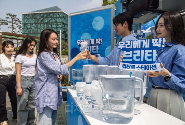 22일 서울 성동구 한양대학교 국제관 앞에서 독일 정수기 브랜드 브리타의 캠퍼스 팝업 '워터풀 스테이션' 행사가 진행되고 있다. 일일 팝업존 형태로 운영되는 이번 행사는 대학생들에게 브리타 정수기로 내린 물로 제작한 시원한 음료수를 선보이며 포토존·에어볼 게임 등 다양한 프로그램을 즐길 수 있도록 마련됐다. 이날을 시작으로 23일 성신여대, 27일 세종대에서도 행사가 진행될 예정이다.