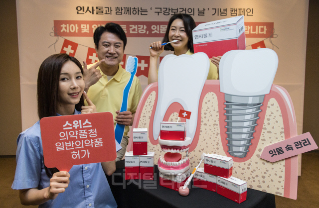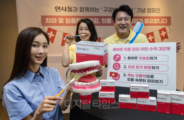 제79회 '구강보건의 날(6월 9일)을 앞두고 5일 서울 중구 플라자호텔에서 모델들이 '동국제약, 인사돌과 함께하는 구강보건의 날 캠페인'을 소개하고 있다. '치아 및 임플란트 건강, 잇몸 속부터 관리가 필요합니다'라는 주제로 진행된 이날 캠페인은 구강건강과 잇몸 관리의 중요성을 적극적으로 알리고, 치아와 임플란트를 건강하게 유지하기 위해서는 잇몸 속 관리가 중요하다는 메시지를 전달하기 위해 마련됐다.