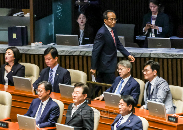 [포토] 의사진행 발언 마치고 퇴장하는 추경호