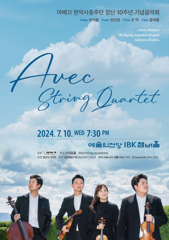 불어로 '함께'라는 뜻을 가지고 있는 Avec 현악사중주단은 그동안 정기연주회와 여러 기관들의 초청연주, 찾아가는 음악회, 해설이 있는 음악회 등 다양한 연주로 호평 받고 있으며 다채로운 무대를 통해 관객과의 만남을 이어오고 있다.