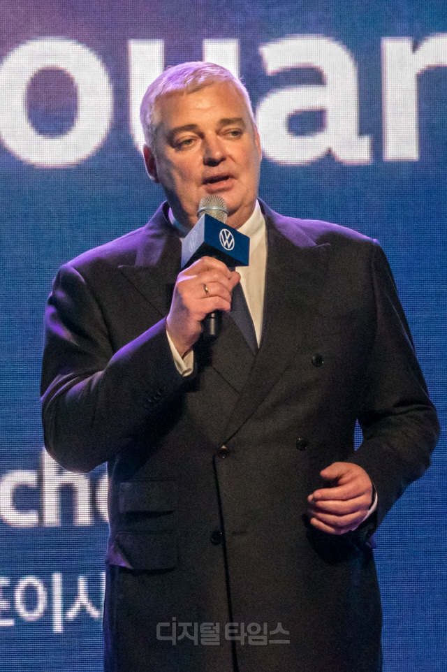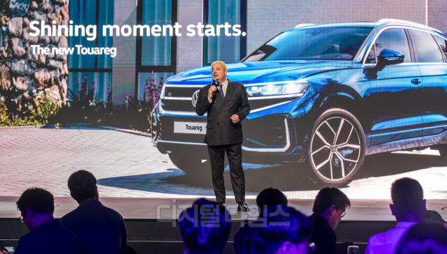 틸 셰어 폭스바겐그룹코리아 대표이사 사장이 6일 서울 용산구 그랜드 하얏트 서울에서 열린 폭스바겐 플래그십 SUV '신형 투아렉' 출시 행사에서 차량을 소개하고 있다.