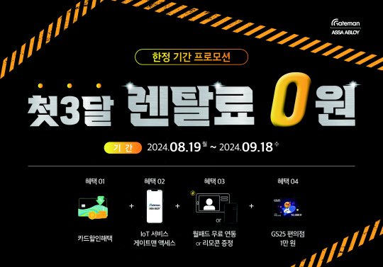 이외에도 도어락 건전지 교체를 위해 GS25 편의점 금액권 1만 원, 렌탈 서비스 이용 기간인 3년 내내 무상 A/S를 제공해 이용 중 겪을 수 있는 불편을 최소화했다. 게이트맨 렌탈 관련 자세한 내용은 게이트맨 렌탈 공식 홈페이지에서 확인할 수 있다.