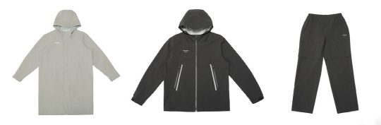 '워터쉴드 레인코트'는 베이지 색상의 트렌디한 아이템이다. 다리까지 비를 막아줄 수 있도록 긴 기장감에 밑단 트임을 주어 활동성을 높였으며, 메인 라벨 위치와 루프 디테일을 적용해 간편한 건조를 가능하게 했다. 패커블백도 포함되어 있어 편리함을 더했다.