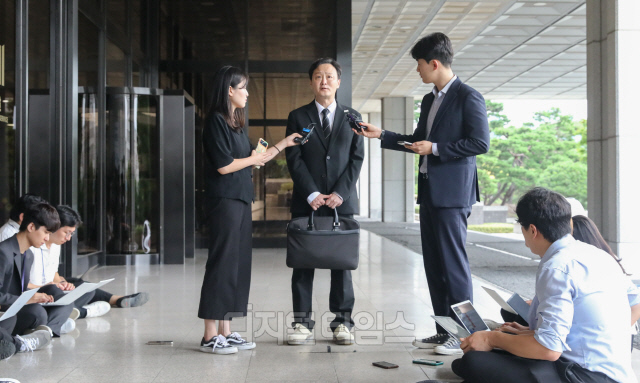 티몬·위메프의 대규모 미정산 사태와 관련해 류광진 티몬 대표가 19일 피의자 신분으로 조사받기 위해 서울 서초구 서울중앙지방검찰청에 출석하며 취재진 질문에 답하고 있다.