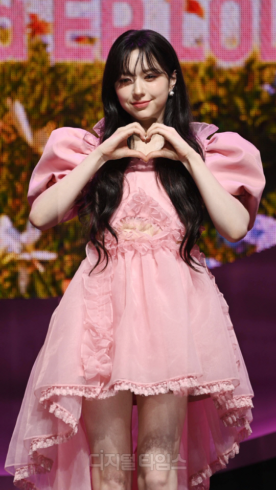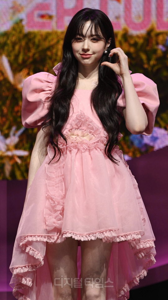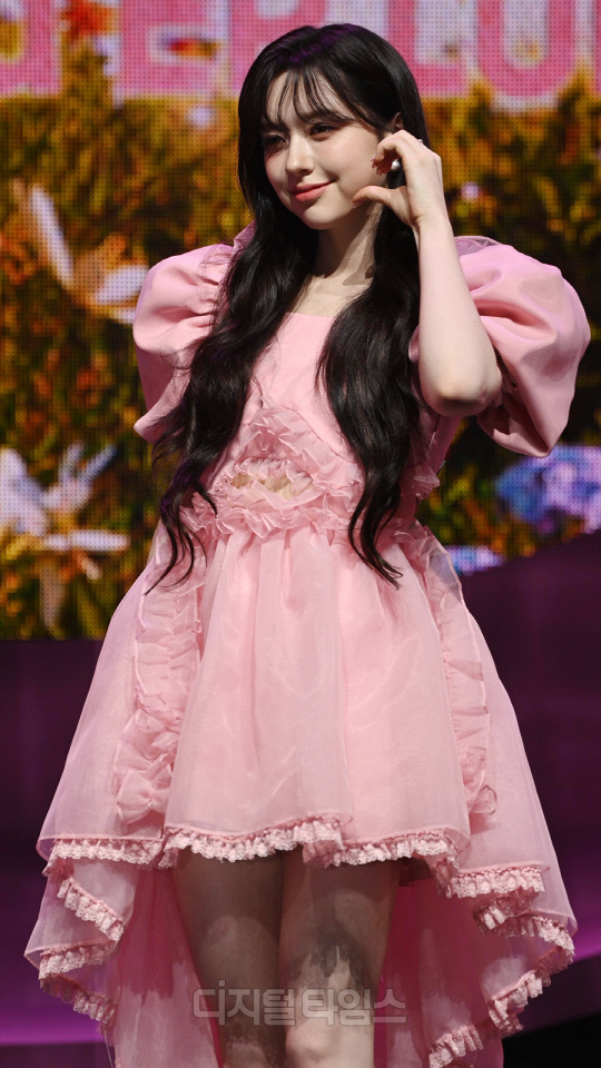 그룹 FIFTY FIFTY(피프티피프티)의 문샤넬(CHANELLE MOON)이 20일 서울 광진구 광장동 예스24 라이브홀에서 열린 두 번째 미니 앨범 '러브 튠(Love Tune)'의 쇼케이스에서 포즈를 취하고 있다.