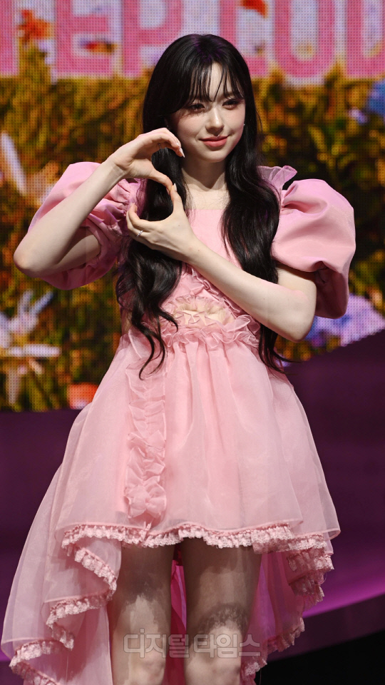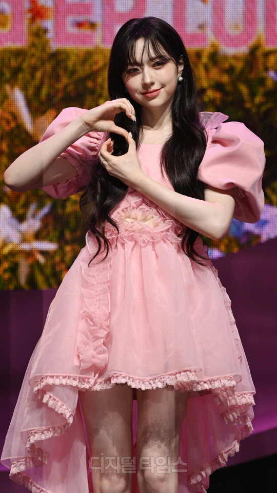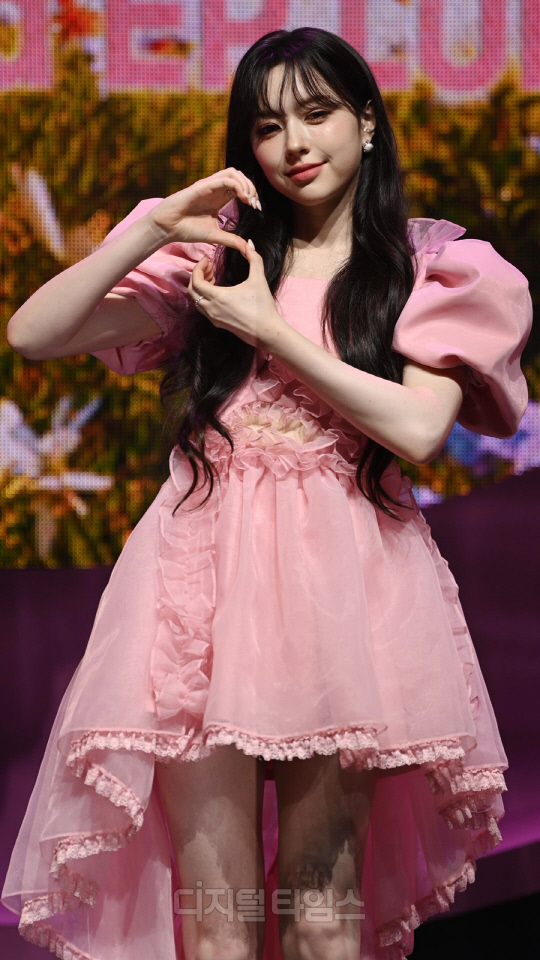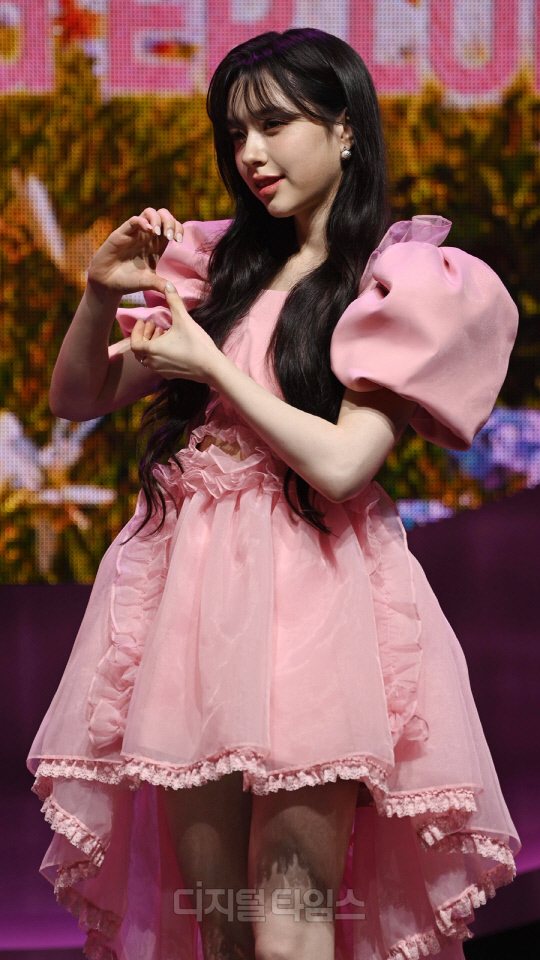 그룹 FIFTY FIFTY(피프티피프티)의 문샤넬(CHANELLE MOON)이 20일 서울 광진구 광장동 예스24 라이브홀에서 열린 두 번째 미니 앨범 '러브 튠(Love Tune)'의 쇼케이스에서 포즈를 취하고 있다.