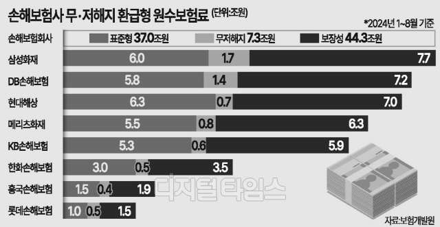 8개사 중 무·저해지 판매 비중이 큰 곳은 삼성화재(1조6541억원)였으며, 그 다음으로 △DB손해보험(1조3795억원) △메리츠화재(8500억원) △현대해상(7877억원) △KB손해보험(6201억원) 순이었다. 중소형사 중에선 롯데손해보험(5718억원)의 판매 비중이 높았으며, 한화손해보험(5658억원), 흥국화재(3972억원)가 그 뒤를 이었다.