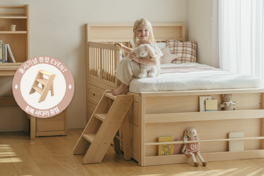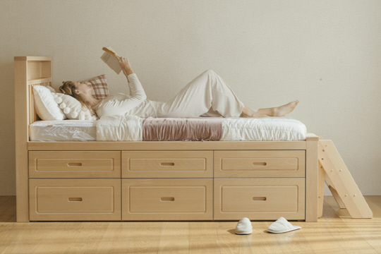 총 6단의 수납력을 자랑하는 서랍은 300L 냉장고보다 더 높은 내부 수납 공간이 있으며, 침대 풋보드에 전면 책장을 설계해 아이만의 작은 도서관을 만들 수도 있다. 헤드 부분에는 3단 LED 수면등과 USB 포트도 탑재하여 아늑한 분리수면을 돕는다.
