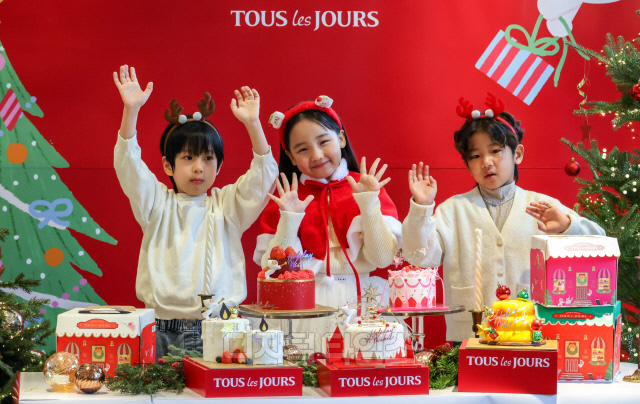 19일 서울 중구 뚜레쥬르 제일제당센터점에서 모델들이 '2024 윈터 홀리데이 시즌 케이크' 신제품을 소개하고 있다. 뚜레쥬르는 'Holiday Wishes, 꿈의 소원 상점'을 테마로 샤이닝 화이트초코, 홀리데이 레드 초코, 러블리 홀리데이 등 시즌 한정 케이크를 출시했다.