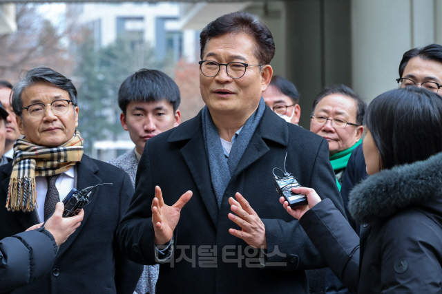 2021년 더불어민주당 전당대회 돈봉투 살포 의혹에 개입한 혐의로 기소된 송영길 소나무당 대표(전 더불어민주당 대표)가 8일 서울중앙지방법원에서 열리는 정당법·정치자금법 위반 혐의 1심 선고공판에 출석하며 취재진 질문에 답하고 있다.