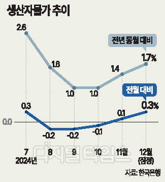 이 팀장은 "생산자물가는 현재로선 상승요인이 있지만 국내 경기동향, 공공요금 조정 영향을 받기에 농축산물 가격추이를 조금더 지켜봐야할 것 같다"고 덧붙였다.