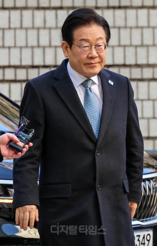 이재명 더불어민주당 대표가 4일 서울 서초구 서울중앙지법에서 열린 '대장동 배임·성남FC 뇌물' 관련 1심 속행 공판에 출석하며 지지자들을 향해 손인사를 하고 있다.