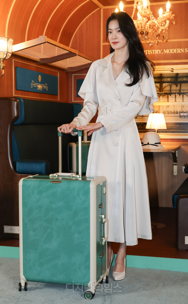 배우 옥자연이 10일 서울 강남구 스케줄청담에서 열린 쌤소나이트 창립 115주년 기념 '뉴 스트림라이트' 팝업 포토콜 행사에 참석해 포즈를 취하고 있다.
