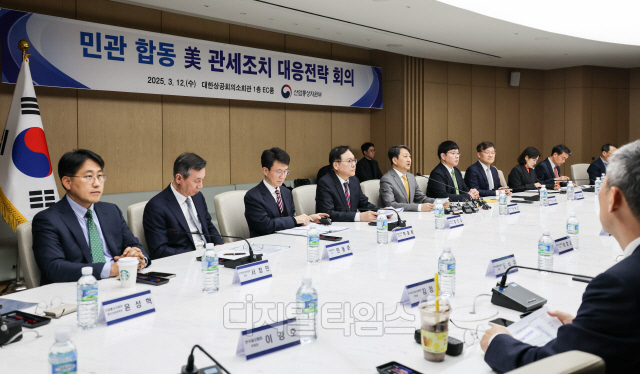 안덕근 산업통상자원부 장관이 12일 서울 중구 대한상의에서 열린 민관 합동 미 관세조치 대응전략 회의에서 모두 발언을 하고 있다.