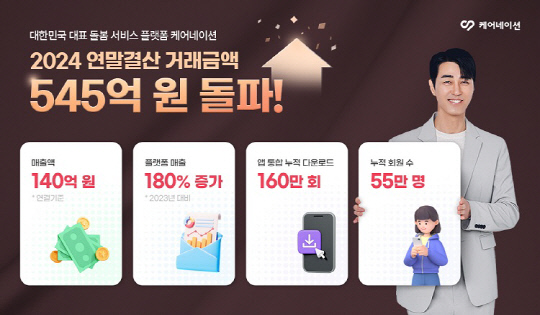 케어네이션은 2024년 한 해 동안 플랫폼 거래 금액 545억원을 기록하며 전년 대비 153%의 성장률을 달성했다. 또한, 매출 규모 140억원을 돌파하고 플랫폼 부문 매출이 전년 대비 180% 성장하는 등 괄목할 만한 성과를 거뒀다. 누적 가입자 수는 55만명(2024년 12월 기준)을 넘어섰으며, 앱 통합 누적 다운로드 수는 160만에 육박했다.