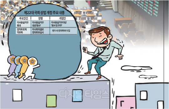 주주소송 남발·투기자본 공격에 경영권 위태 기술력 갖춘 중소·중견도 기업사냥꾼에 노출 자본시장법으로 대체 호소·재의요구권에 희망 거야(巨野) 주도로 이사의 충실 의무 대상을 주주로 확대하는 상법 개정안이 13일 국회 본회의를 통과하면서 기업들은 말 그대로 '칼날 위에' 선 위태로운 처지에 놓였다. 미래 투자, 인수합병(M&A) 등의 과정에서 모든 주주를 만족시키기 어려운 현실인 만큼 결국 '소송 남발'로 이어져 기업 경영이 사실상 '올스톱' 될 수 있다는 우려가 터져 나온다.