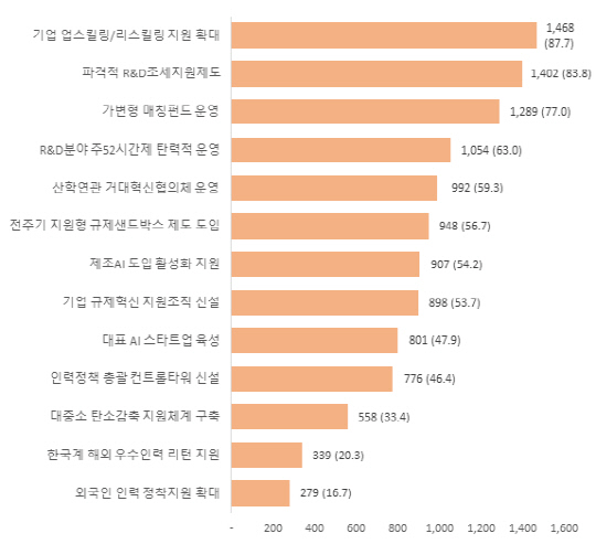 학령인구 감소와 이공계 기피 등으로 갈수록 부족해지는 산업계 우수 인재 유치를 위한 정책 제안도 나왔다. 이를 위해 'K-브레인 리턴본부'를 설치해 한국계 우수 인재 유입을 위한 대규모 귀환 인재 유치 프로그램과 외국인 우수 인력 유치를 위한 체계적인 인재 유입 전략을 마련해야 한다고 주문했다.