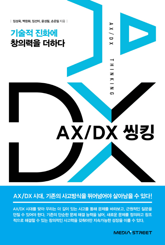 ㈜미디어스트리트가 기술혁신 시대의 창의적 문제 해결 전략을 담은 신간 'AX/DX 씽킹'을 출간했다. 이 책은 임성욱, 백창화, 임선미, 윤성필, 손은일 등 학계와 산업계를 아우르는 전문가 5인이 공동 집필한 결과물로, 디지털 전환(DX)과 인공지능 전환(AX) 시대에 요구되는 사고방식과 문제 해결 프레임을 다룬다.