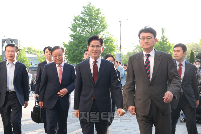 [포토] 한덕수 후보 만나기 위해 이동하는 김문수 후보