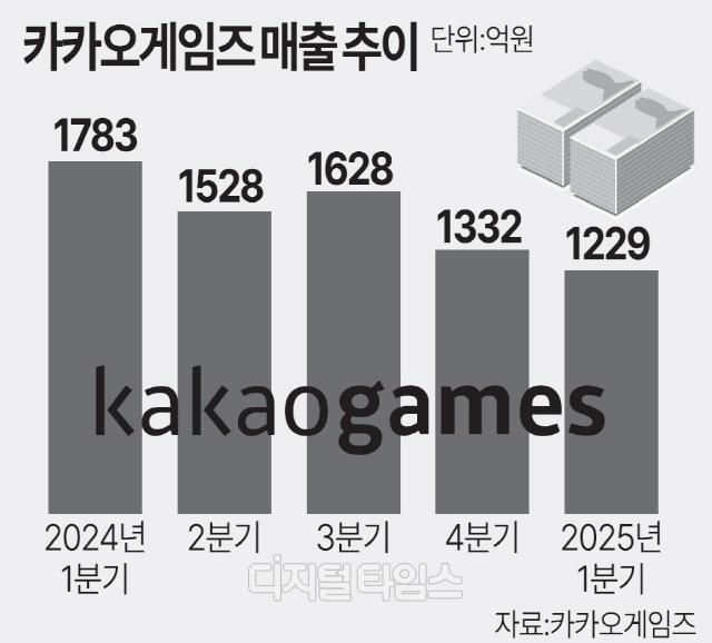 카카오게임즈는 1분기 매출액 1229억원, 영업손실 124억원을 기록했다고 7일 공시했다. 매출액은 전년 동기 대비 31% 감소했다. 지난해 4분기에 이어 2개 분기 연속 영업손실을 낸 가운데 적자폭이 더욱 확대된 점이 뼈아픈 대목이다.