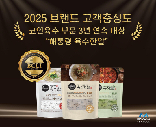 해통령(운영사: 빅마마씨푸드㈜)이 '2025 브랜드 고객충성도 대상'에서 코인육수 부문 1위에 선정되며 3년 연속 수상의 영예를 안았다.